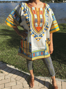 African Unisex White with Yellow Dashiki Plus Size! Hippie Shirt! 60s 70s Look!