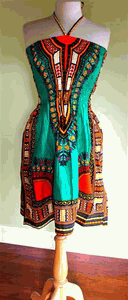 Dashiki Print Tube Halter Green Sun Dress or Skirt! One Size!