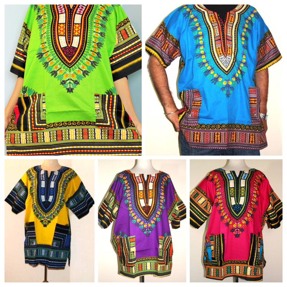 African Unisex Dashiki Plus Size! One Size! One Size Fits Most! Hippie Shirt! 60s 70s Look! It is made in cotton, has two pockets on the front, comes in free size, which easily fits upto size 1x. If you need bigger, check the one available in sizes. More Colors are also available. Measurements, Length 34", Bust and Hip 52-54".da2y